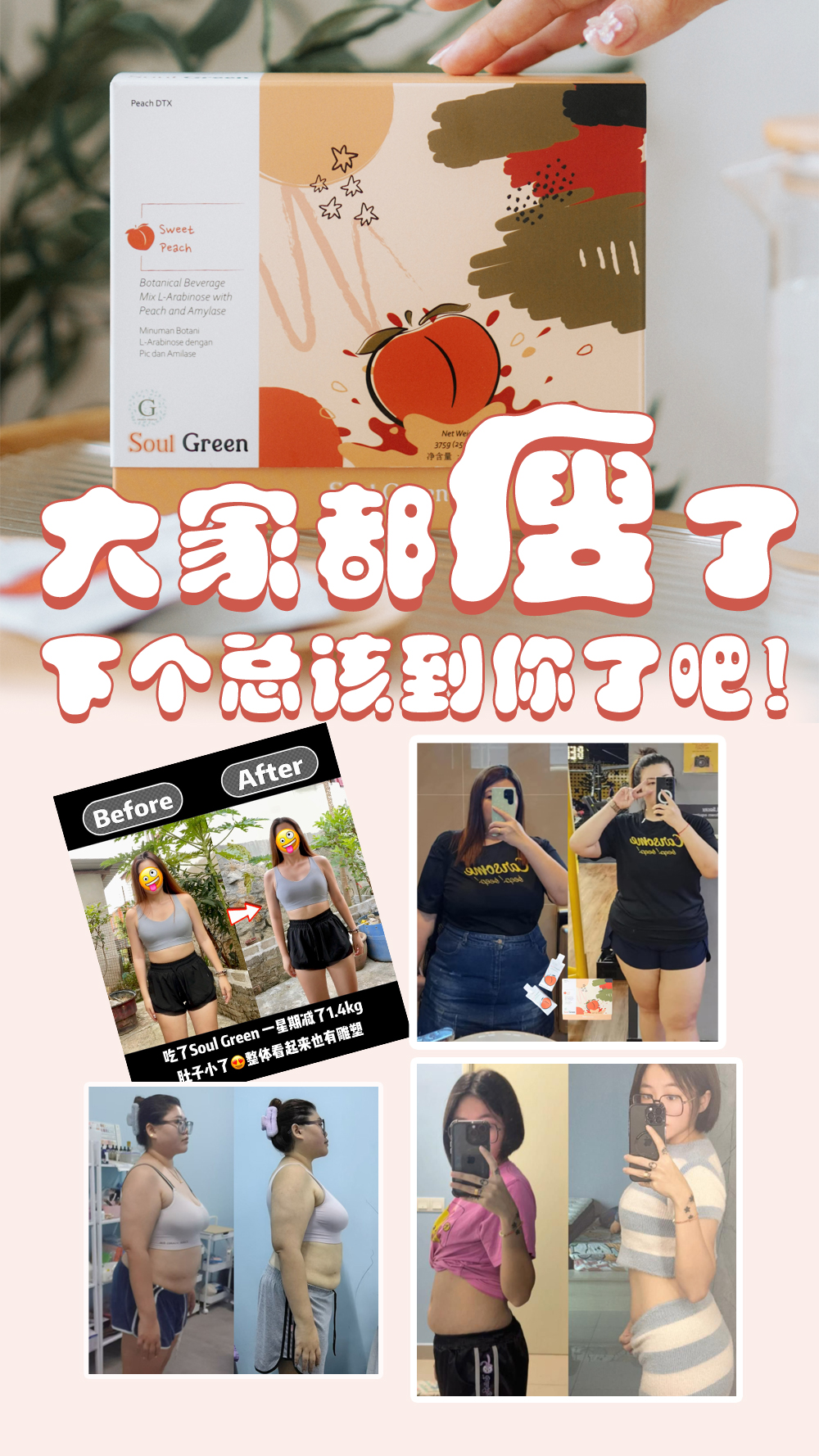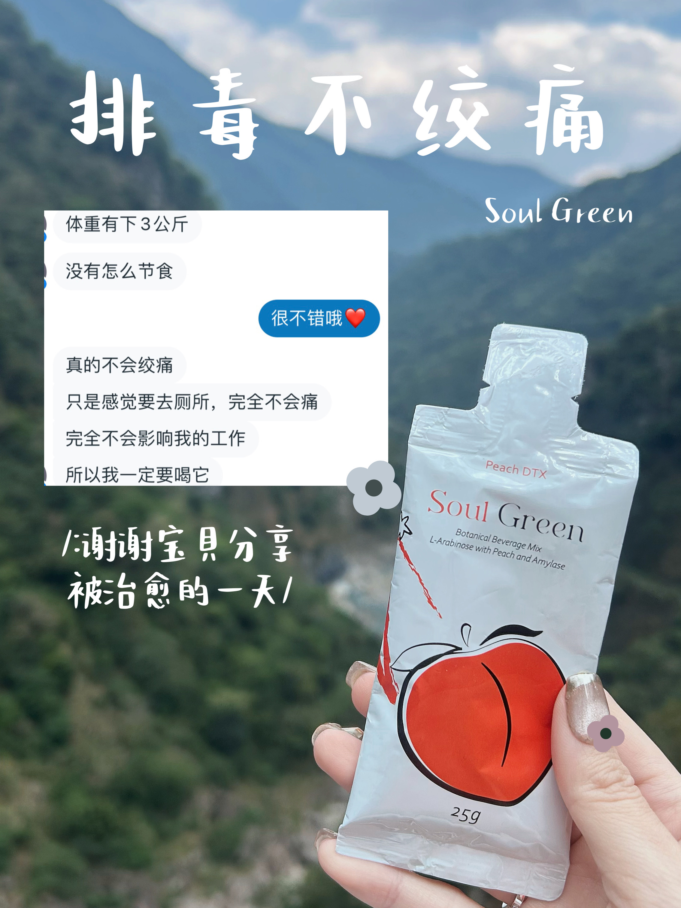🍑 Soul Green 可以帮助消化淀粉排毒,舒解肠道,排出多年累积的毒素宿便,保护肠道,消化淀粉,长期喝养成易瘦体质。
